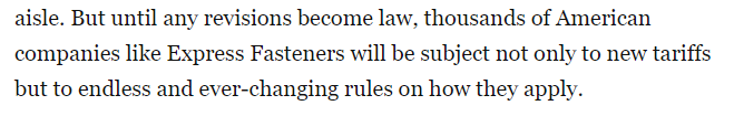 著述强调,法院的裁决对好多其他因第232条件关税而加多资本的好意思国公司来说至关紧要。非论是在此案已经其他任何案件中。第232条件必须进行立异,但在职何立异案最终成为法律之前,像Express Fasteners这么的数千家好意思国公司不仅要承受新关税的冲击,还要面对玩具丧志、束缚变化的关税适用章程。