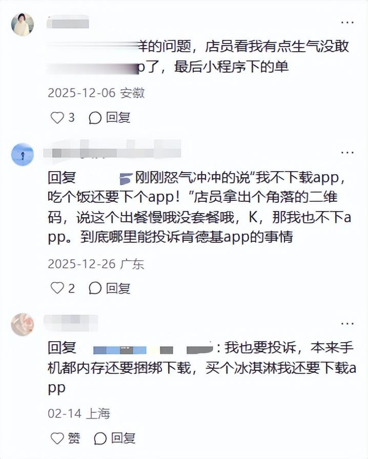 看成领有超1.2万家门店的餐饮巨头,肯德基随性推动数字化转型,推出官方APP以优化点餐体验,但施行使用中,强制践诺、系统卡顿、售后缺位等问题频发,让这款本应毛糙的器用,反而导致移交平台吐槽不断的主要原因。